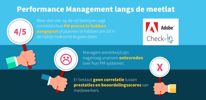 Het lijkt een nieuwe trend te worden. Steeds meer bedrijven en organisaties stappen af van klassieke vormen van Performance Management. De nadruk ligt nu nog te veel op het beoordelen en evalueren van prestaties van medewerkers zonder koppeling aan groei en ontwikkeling, op één of twee vaste momenten in het jaar, op basis van vaste beoordelingsschalen en verdelingscurves. Huidige PM processen zijn bovendien vaak te complex, te rigide, en sluiten niet aan bij huidige behoeften van medewerkers.